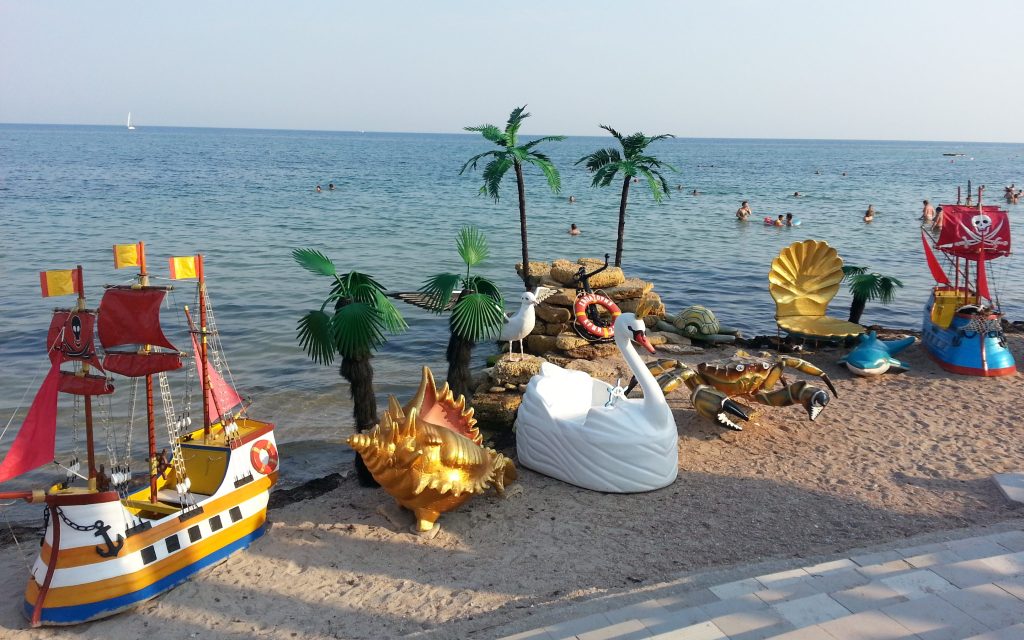 Les promenades de bord de mer de Koktebel, Gourzouf, Feodosia, Aloushta se ressemblent : les stands de souvenirs, de tatouages éphémères ou de tresses africaines sont partout. Sur les plages bondées dès 7 h du matin, les corps exposés rougissent, pèlent, puis noircissent. C’est étrange mais ici, c’est presque beau. La mer trône sur cet océan de chair humaine mais n’a pas l’air de s’en soucier. En retour, on ne la sollicite pas : l’horizon est toujours dégagé. Quelques jet-ski vrombissent à proximité du rivage mais personne ne se risque à explorer le large. Jamais un bateau ne passe au loin. La mer est partout, mais n’appelle jamais à l’ailleurs. Une masse inerte, juste là.